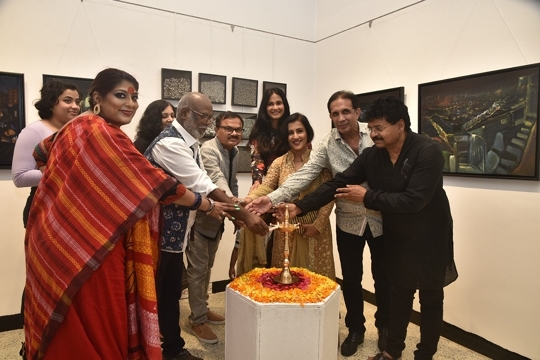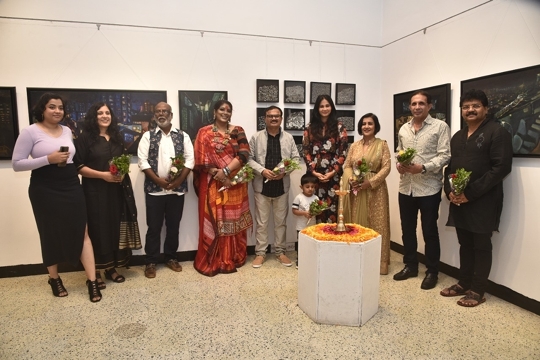 परवेज दमानिया, सुधारक ओल्वे, मधुश्री, रूपाली सूरी, रुशा माधवानी, अनुषा श्रीनिवासन अय्यर, संजय निकम ने जहांगीर आर्ट गैलरी में ललित पाटिल के लैंडस्केप ऑफ आइडेंटिटी का उद्घाटन किया।