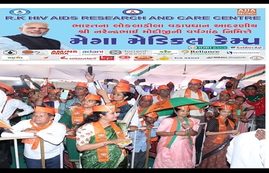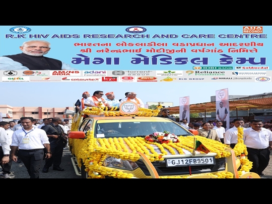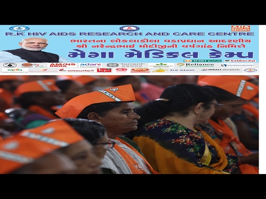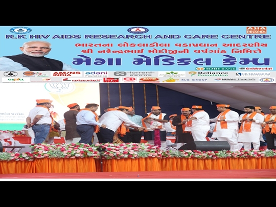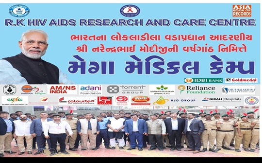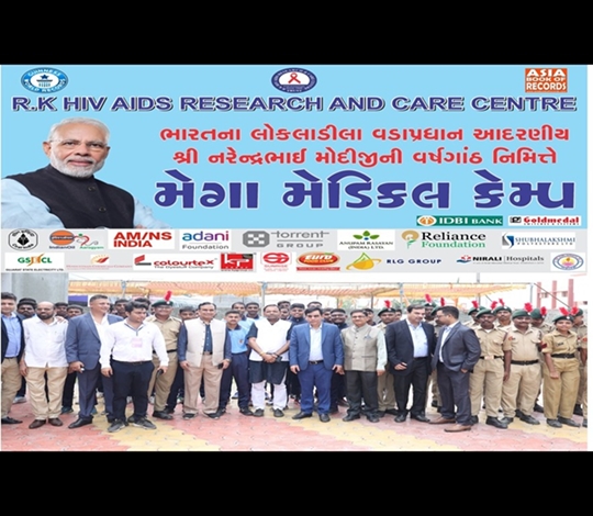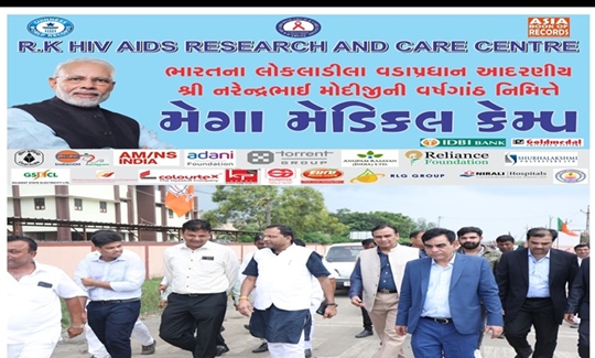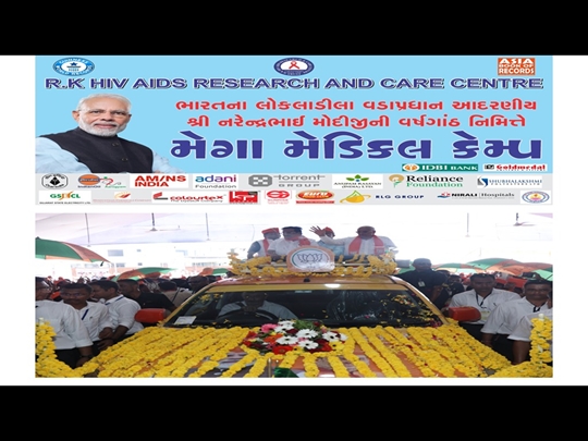 Lakhs of patients benefited in the camp organized by RK HIV AIDS Research and Care Center, which has been named in Guinness Book of World Records and Asia Book of Records,  PM interacts with patients, 900 doctors, 1700 paramedical staff, 50 Specialist Consultant Doctors were present.