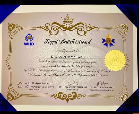 Dr Sandeep Marwah Honoured In London