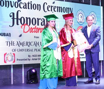 On 21st February Ambassador Dr Daljeet kaur under the guidance of His Excellency Dr Madhukrishan awarded the Honorary Doctrate( honours causis) to Many top reputed Personalities of the world at Grand Sheraton in Dubai.The chief Guest of the evening was His Highness Dr Nawab Mir Nasir Ali Khan Counsulate General of Kazakistan.