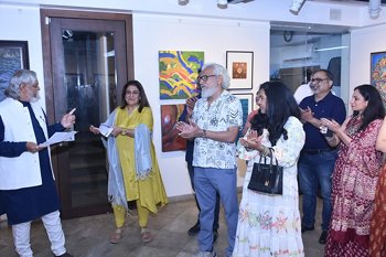 The show was inaugurated by Chief Guest, Mr Hasmukh Shah, renowned Interior Designer and Hon. Chairman, IIID ( Indian Institute of Interior Designers) and Guest of Honor Mr. Gautam Naik, Senior architect and artist . The show has been curated by Aparimita Sapru, artist and curator . The inauguration was done in the presence of participating artists and art aficionados