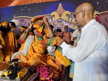 RENOUNED kathakar shri KAUSHIK JI MAHARAJ ‘S katha was held at Fatehabad in Agra where Mr.Shrivastava being a famous personality of kayastha samaj from film faternity was called as a chief guest of honour to perform lord krishnas arti and seek the blessing of Shri kaushik ji maharaj.Mr.Shrivastava is very popular in Brij mandal as hes very close to many saints and kathavachaks from brij bhoomi.Also he is always a step ahead in religious activities.often he is seen in vrindavan feeding cows and poor people in an around the region.During covid times he was sending help from mumbai.Not only this his humble and pleasing personality attacts the new bies from entettainment industry.He is easily approachable which is rare in people of his strature.