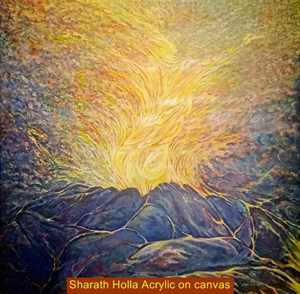Geology and art may seem like two very different fields, but they can intersect in fascinating ways. Muralidhar seems to use the textures, patterns, and colours found in rocks, minerals, and landscapes to serve as a rich source of inspiration as a painter and designer. Realistic Indian art is a testament to the enduring spirit of Indian creativity, encapsulating the nation’s diverse heritage, traditions, and contemporary life. Through its portrayal of the real and the imagined, this genre continues to be a source of inspiration, reflection, and connection for artists and viewers alike, serving as a mirror to India’s multifaceted identity. We see how the artworks have realistically captured various facets of the artist’s influence from the region of Kasargod and Mangalore.