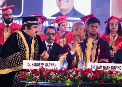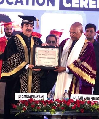 Dr. Sandeep Marwah, the visionary President of AEG, expressed his heartfelt gratitude and immense pride during his address. “The presence of Shri Ram Nath Kovind Ji has made this convocation not just a ceremony, but a historical event for our institution. For 31 years, our relentless pursuit of educational excellence has brought AAFT and AEG to the forefront of the educational landscape in India,” Dr. Marwah stated with evident pride.
