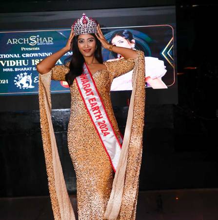 On September 4th, Vidhu’s crowning as Mrs. Bharat Earth 2024 was celebrated by various influential figures in fashion and business. Many celebrities such as Miss India Fitness Shweta Rathore, actress Neetu Wadhwa, actor Surendra Pal graced the ceremony with their presence. Fashion Icon and IIFT owner Ratnadeep Lal, along with Entrepreneur and Archsshar Founder Tusshar Dhaliwal, crowned Vidhu as Mrs Bharat Earth 2024 in the ceremony that marked a significant milestone in her journey.