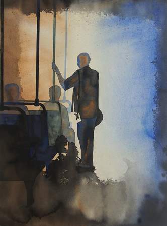 The present series in Water colours on art paper lays emphasis on his journey through life’s canvas as a tapestry of life. It is a chronicle of the ever-shifting landscapes of human existence. He has encountered a Kaleidoscope of emotions such as joy, sorrow, anger, excitement, enthusiasm, satisfaction in his life. These emphasize profound turmoil and fragile beauty which define the human condition so as to highlight diverse complexity of life in a metropolitan city bustling with hustle & bustle resulting into a pulsating lifeline in urban areas, Safar transcends more transits leading to a profound metaphor of human aspirations, struggles and fleeting moments. Aptly moved by these moments, his artistic mind has found expressions in colours and forms so as to render unique parameter and dimension to his symbolic exploration of existence via various human postures, moods and unusual characters through flowing forms, textured washes and abstract nuances etc. His quest to unveil and articulate the unseen has resulted into a visual harmony of the intricate complexities of human life. His canvas has become a refuge where chaos transforms into beauty and despair gives way to hope thereby rendering a happy and positive dimension to his thematic work.