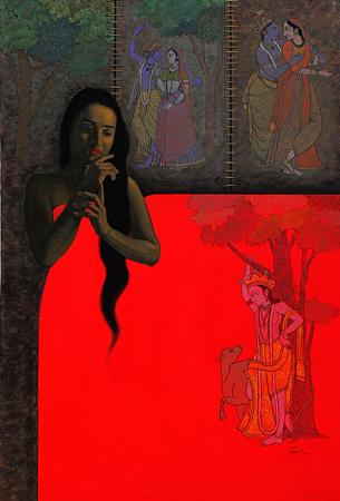 Through his paintings, Prof. Tambe has beautifully expressed this eternal devotion. His artworks illustrate that just as Meera Bai was completely immersed in Krishna’s devotion, the modern woman too experiences the same spiritual longing today. The emotions in her eyes, the devotion that permeates her entire being—these paintings are not mere visual representations but profound spiritual experiences brought to life through art.