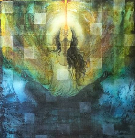 Dinesh Kumar Parmar’s artistic oeuvre stands as a vivid visual meditation on inner states of being, spiritual transcendence, and the synesthetic experience of colour, rhythm, and emotional equilibrium. His recent series, as seen in the mixed-media works from Aura and Meditation, reveals a subtle and contemplative visual language where figuration and abstraction coalesce to communicate metaphysical stillness and emotional euphoria.