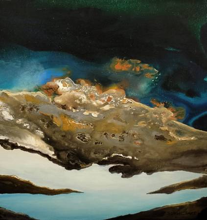 In his visual world, blurred horizons, veiled mountain ranges, and mirrored reflections in water craft a dreamlike ambiance—one that compels viewers to look beyond the surface. His painterly language reflects a sophisticated understanding of space, light, and form. He does not merely depict nature; he interprets it, revealing layers of meaning that transcend visual representation and challenge the very boundaries of artistic expression. His abstract works transform natural elements into symbolic reflections of life. Mountains represent stability and strength; rivers suggest movement and continuity; clouds speak of life’s uncertainty; and the sky becomes a metaphor for freedom and spiritual longing. Through these expressive compositions, Saxena’s art functions as a metaphorical mirror of human existence. Nature, with its rhythmic cycles and inner divinity, profoundly influences human life. Prof. Saxena’s paintings invite the viewer to experience nature not as a static entity, but as a continuously unfolding mystery—one that captures fleeting moments while awakening wonder and introspection. His works are not mere depictions, but meditative explorations that resonate with emotional depth and philosophical inquiry.