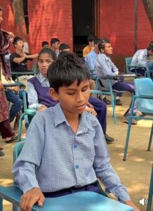 At Rachna Special School, a cake-cutting ceremony was held with the children, and two inverter batteries were gifted to the school.