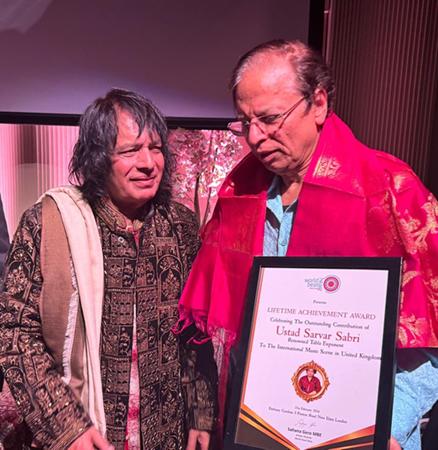 March 2, 2026The Lifetime Achievement Award was presented to renowned tabla exponent Ustad Sarvar Sabri (UK) in recognition of his outstanding contribution to the International Music Scene in the United Kingdom. The son of the legendary sarangi maestro Ustad Sabri Khan, Ustad Sarvar Sabri has upheld a rich musical heritage while forging his own distinguished path as a master percussionist, composer, and educator.
